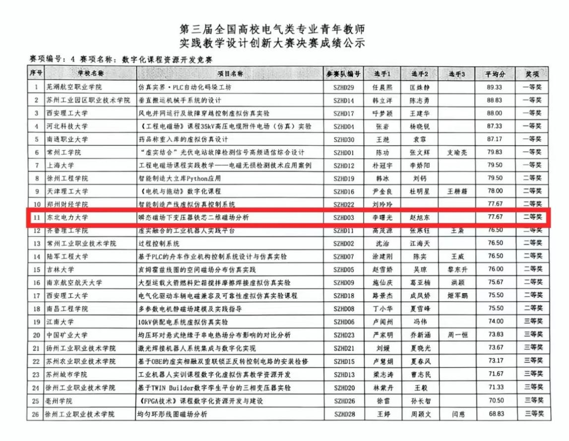 “全国高校电气类专业青年教师实践教学设计创新大赛”是由教育部高等学校电气类专业教学指导委员会与中国电工技术学会联合主办,其中“数字化课程资源开发竞赛”旨在通过数字化课程案例资源的设计和开发,提高青年教师仿真软件的教学应用水平和创新性实践课程的开发能力。