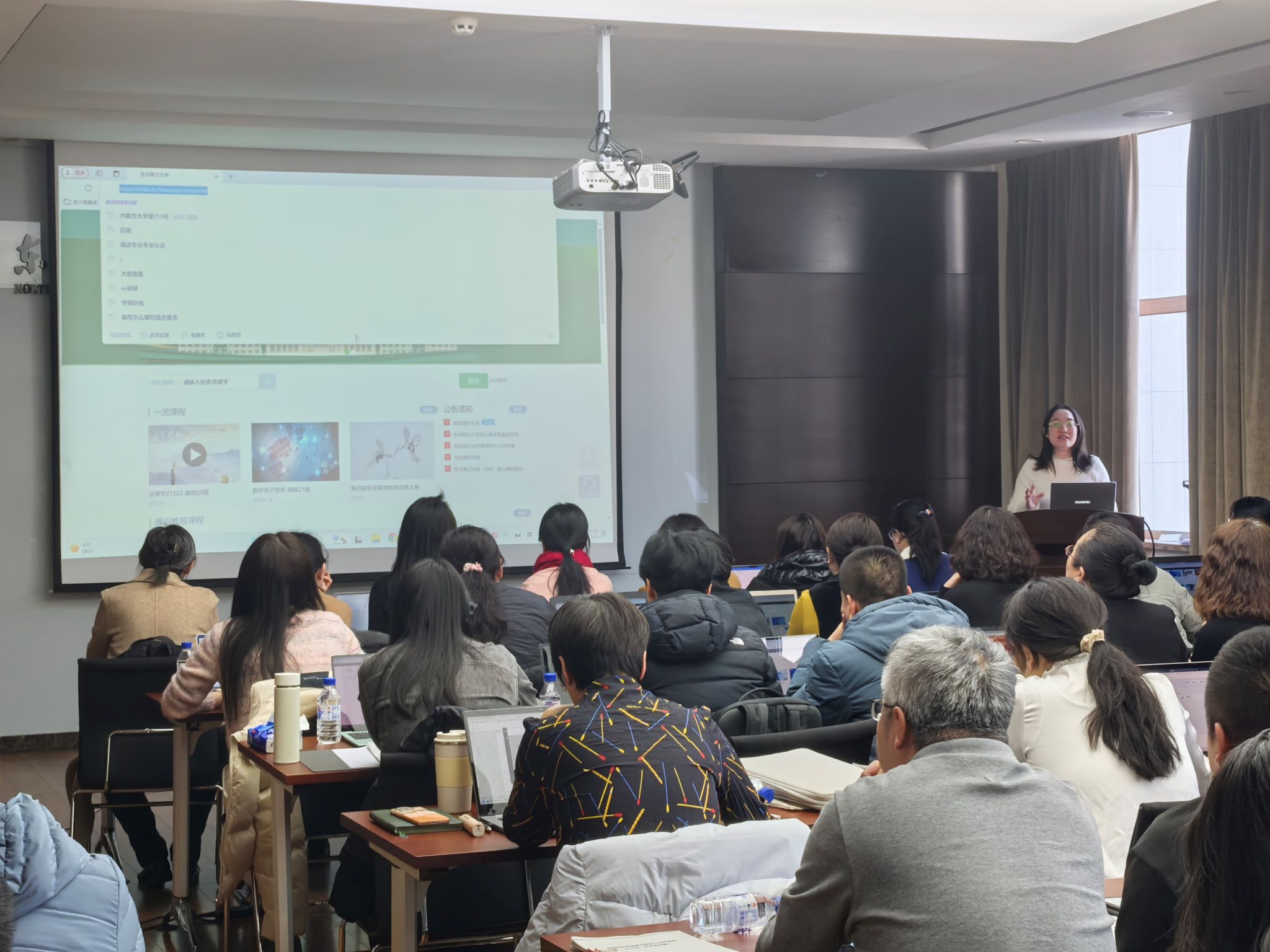 各课程组负责人、教学骨干和全校其他学院教师共60余人参加了会议,会议由教学质量监控与评价中心杜文军科长主持。杜科长希望本次报告会能够有助于广大教师拓宽创新视野,提高对AI赋能教学的认识,提升AI技术应用能力,并鼓励大家拥抱AI、积极尝试、逐步践行,利用数智化教学技术切实提升教育教学质量。
