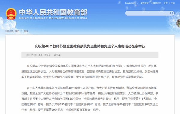9月8日,庆祝第40个教师节暨全国教育系统先进集体和先进个人表彰活动在北京举行。此次受表彰的全国模范教师共有716人,nt动漫