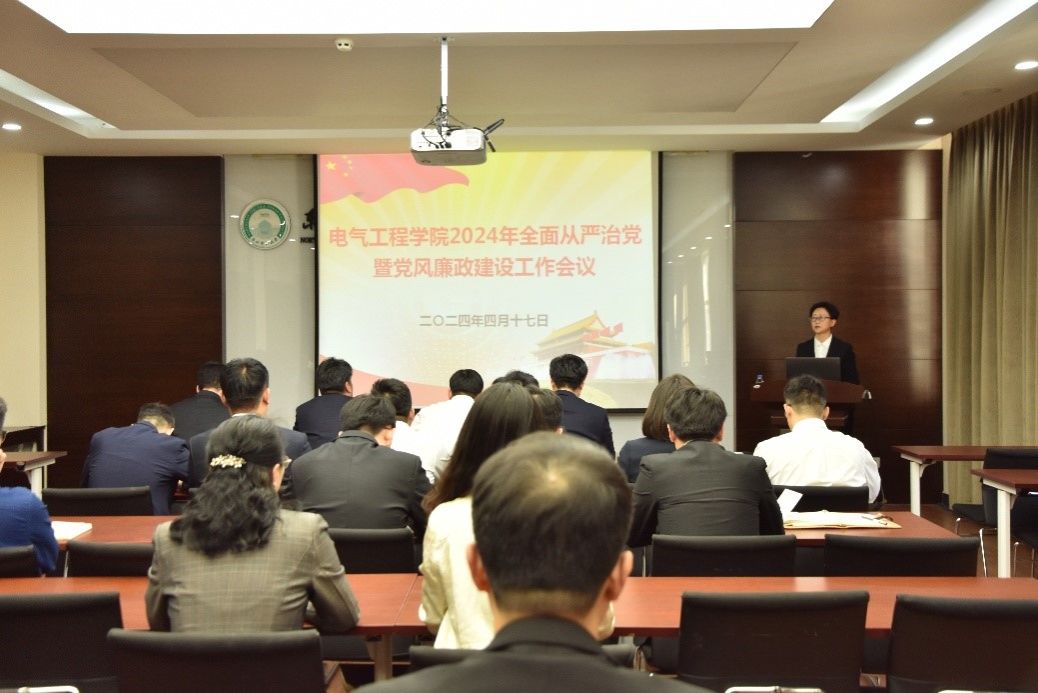 在电动大楼A412会议室召开2024年全面从严治党暨党风廉政建设工作会议,学院党委委员、科级及以上干部、党支部书记参加会议,学院党委书记宋小囡主持会议。
