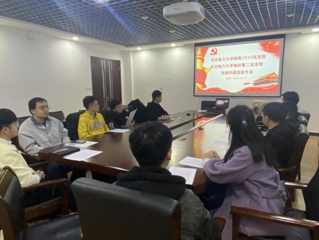 电研第二党支部书记吕迪及支部全体党员、华北电力大学研电2010党支部书记李雪洋及支部全体党员参加了此次活动,会议由吕迪主持。