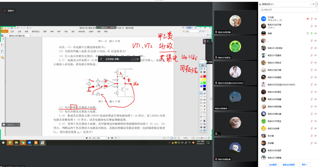 学业帮扶党员先锋小组首先与学院学生工作办公室进行了交流,确定需要帮扶的学生名单。受疫情影响难以进行线下教学,小组成员、支部党员李辉老师为了更好地帮助学生答疑解惑,精心准备了线上教学资源。李辉就《模拟电子技术基础》课程对19名学生开展了线上学业帮扶,按照“梳理知识点为主,举例及答疑为辅”的思路,通过线上辅导的方式帮助学生掌握课程脉络,熟悉课程重点,提升学习兴趣,让学生感受到学校的温暖与关怀,受到了学生们的一致好评。