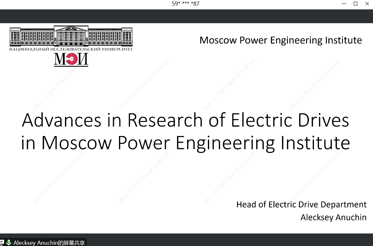 12月29日下午,应学院邀请莫斯科动力学院Alecksey Anuchin教授通过腾讯会议方式作了题为《Advances in Research of Electric Drives in Moscow Power Engineering Institute》的线上学术报告,并在腾讯会议直播平台进行了直播。本次学术报告由姜涛教授主持,学院部分教师、研究生及本科学生在线聆听了本次学术报告。