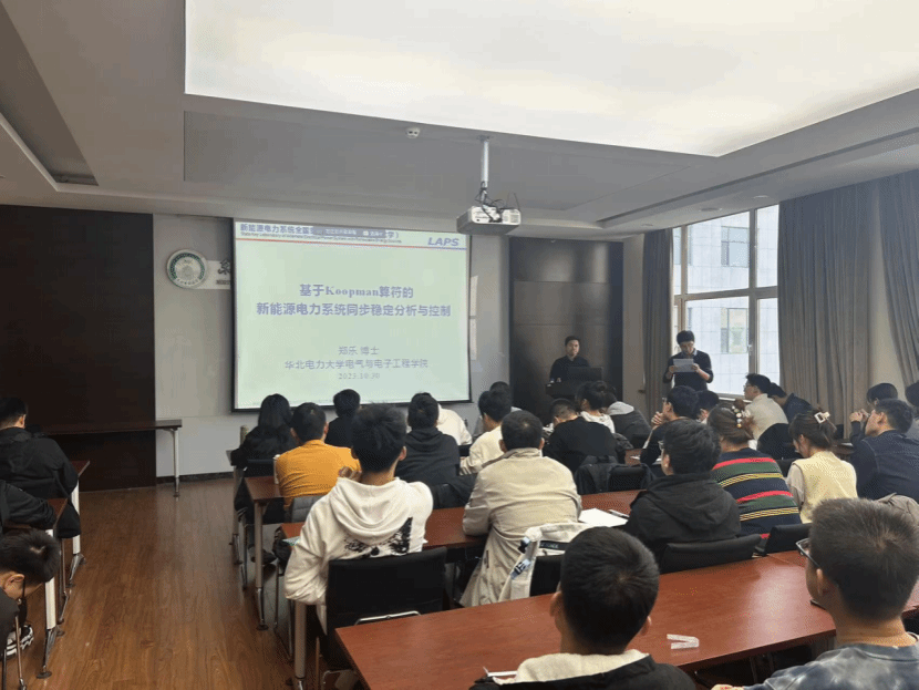 邀请,华北电力大学郑乐博士在电动大楼A412作了题为《基于Koopman算符的新能源电力系统同步稳定分析与控制》的学术报告。本次学术报告由nt动漫
