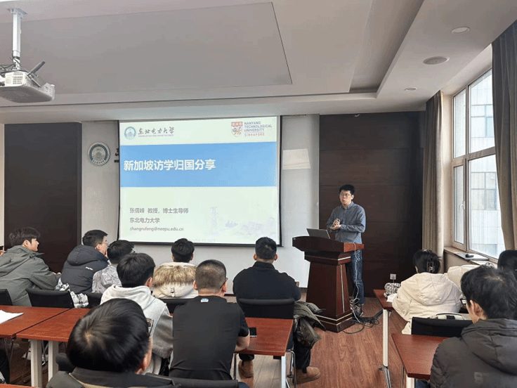 张儒峰老师结合自己在新加坡一年的学习生活和所见所闻,在报告中分享了他出国期间的学习成果和切身体会。他详细介绍了新加坡风土人情、新加坡南洋理工大学和EEE学院、南洋理工大学合作团队科研方向及人才培养经验、访学期间研究成果及高水平综述论文写作技巧。